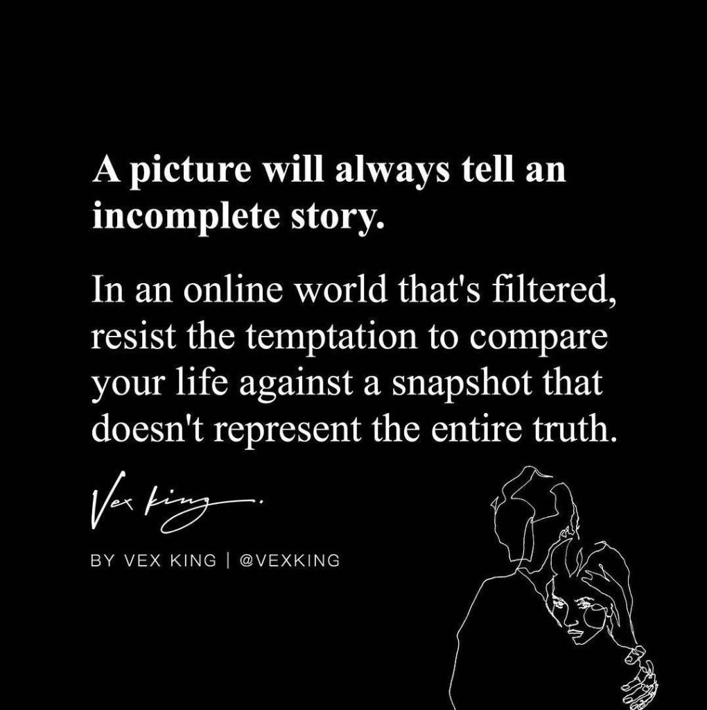 I think, above all, I must close with this: like many topics in this blog, I write about things I am nowhere near perfect at. I share my thoughts because they are relevant to me, and I believe that opening the discussion is the best place to start. I do not share to be preachy or because I have everything together. This is so far from the case. I am struggling with this every day. So let’s try to normalize that what we see and show in our squares is only a piece of the puzzle. It is the view we want to give others. And there is nothing wrong with that AS LONG AS we take it for what it is – a filtered view of reality.